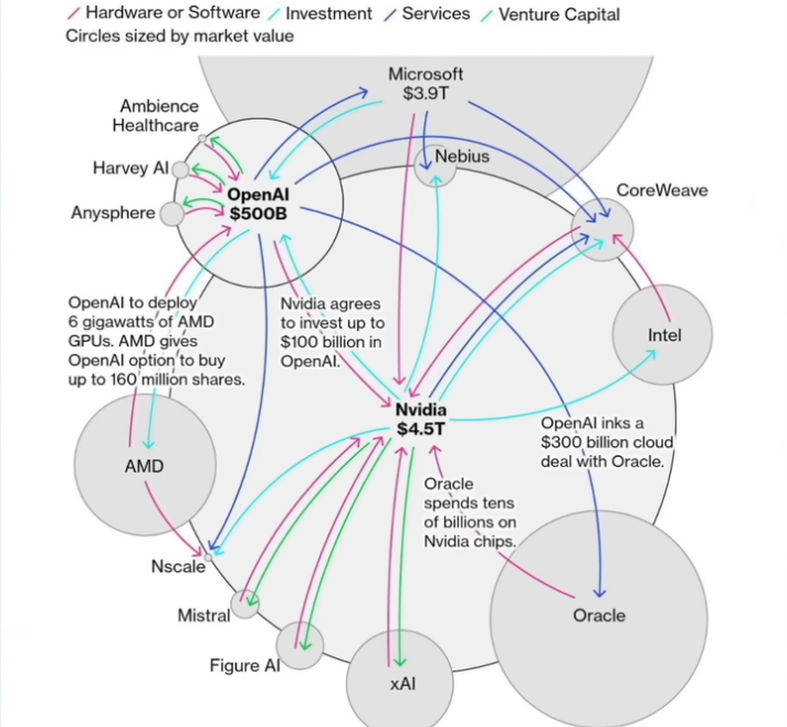 This is good. Open AI. Yes, it has earned $12 billion. It has its own revenue. Remember, we are not talking about profit; I am just talking about returns because overall, despite all this craze and madness, this company is still running at a loss, but OpenAI has become a $500 billion company today. How come so much money is being invested in this loss-making company? More importantly, who are these people? Where do they come from? You will also find the answer to this question hidden on this chart. First, let’s look at the biggest player in this chart .NVIDIA is going to invest $100 billion in OpenAI alone.
